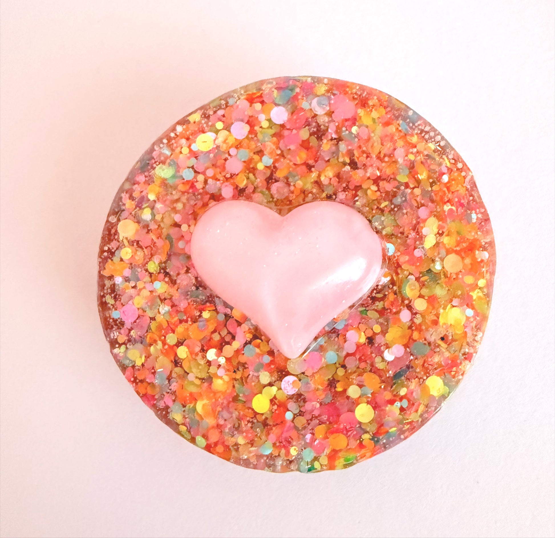 This also has a crunchy sounding star charm filled with tiny sequins that makes great sounds when pressed or when the tool is shaken. With neon glitter and a smooth heart on the front, this sensory tool is great for those who want an all round sensory experience. Also includes one glow in the dark charm.