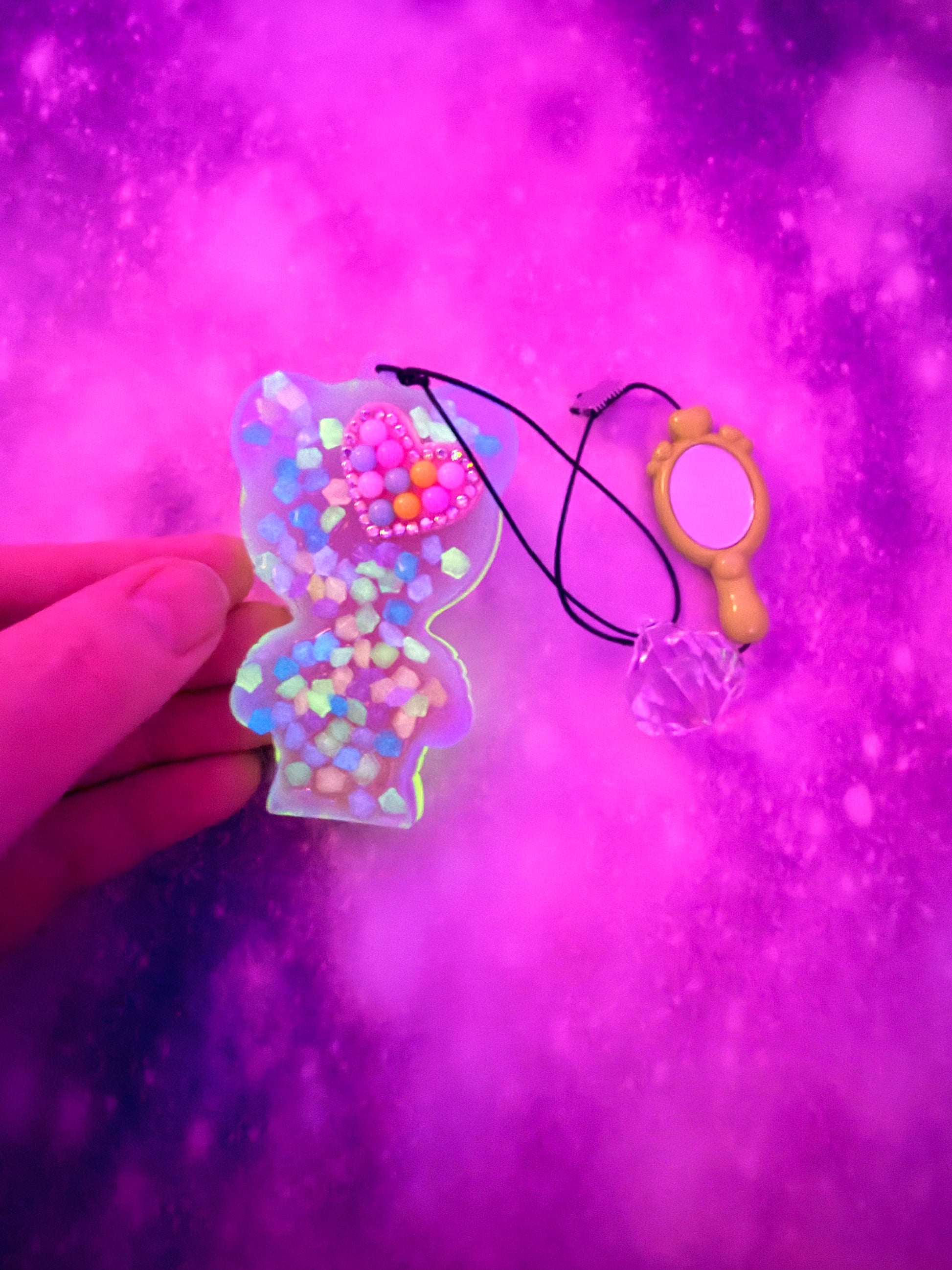 Astro Iris is a medium to high pain stim, which means her back is decorated with sharp beads. It’s safe to squeeze and hold for those who are experienced with pain stims, but I don’t recommend you purchase unless you know what a pain stim toy is and you’ve used them before.