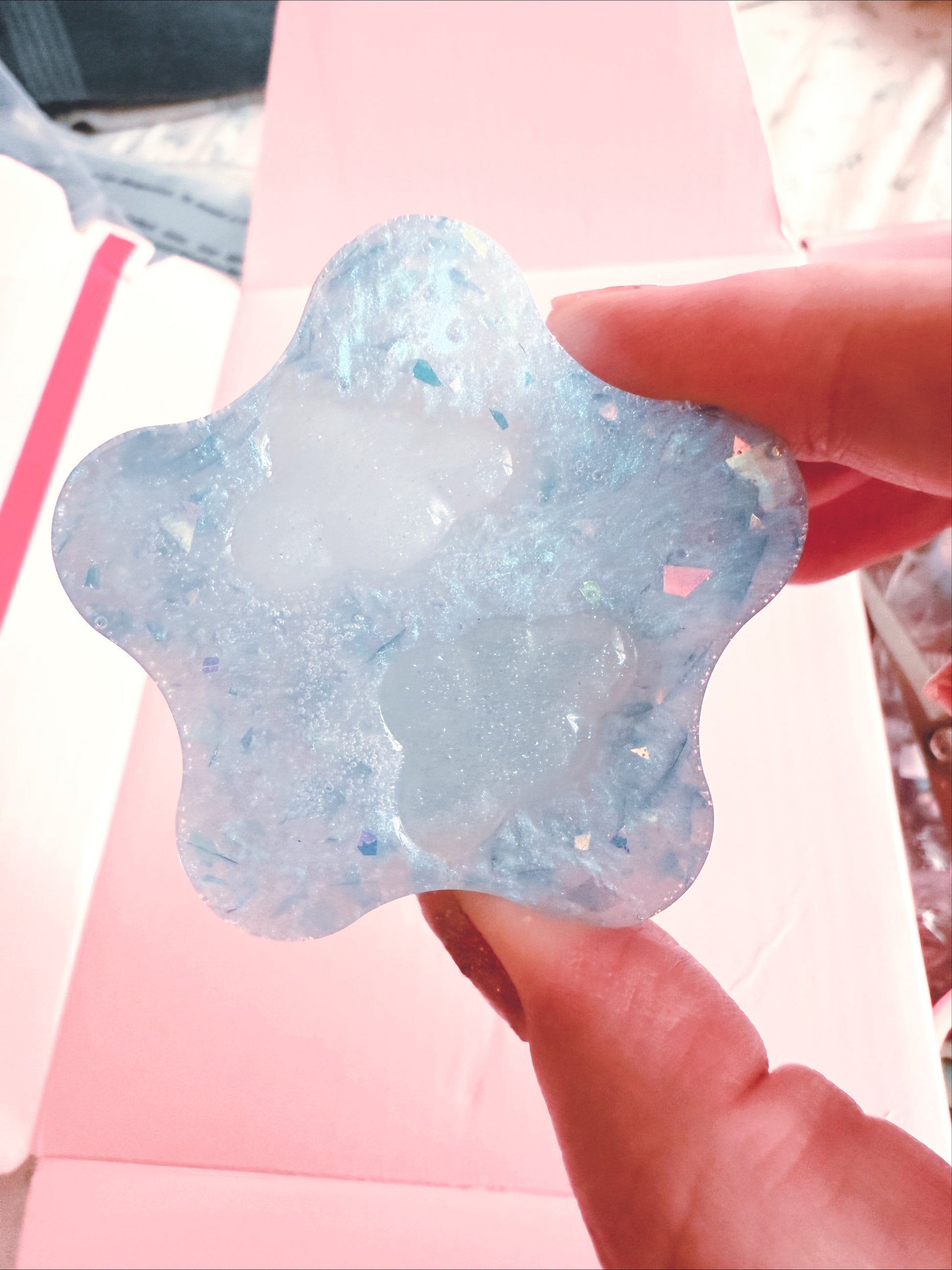 My worry stones have a twist! (Literally!) The cloud on the surface on this worry stone twists and turns like a fidget spinner. They all have textured backs decorated with attractive beads and charms for a personalised fidget toy. These stones are great to twirl in your fingers or glide your fingertips over for a great pain stim. Beautiful to look at and satisfying to touch, you can take it anywhere and use when you need a moment of peace and comfort. Each stone comes in its own pouch you can attach to anything.