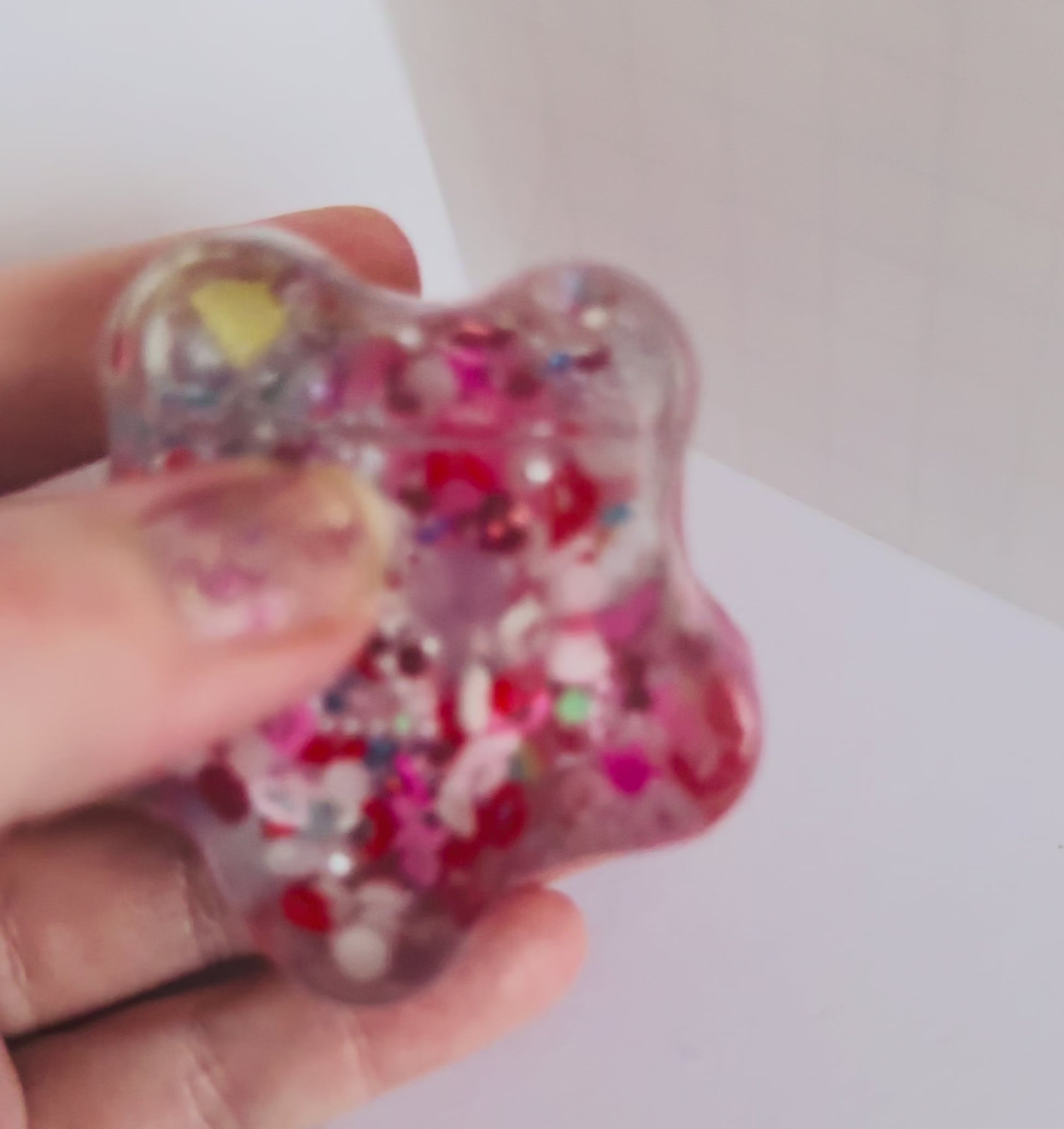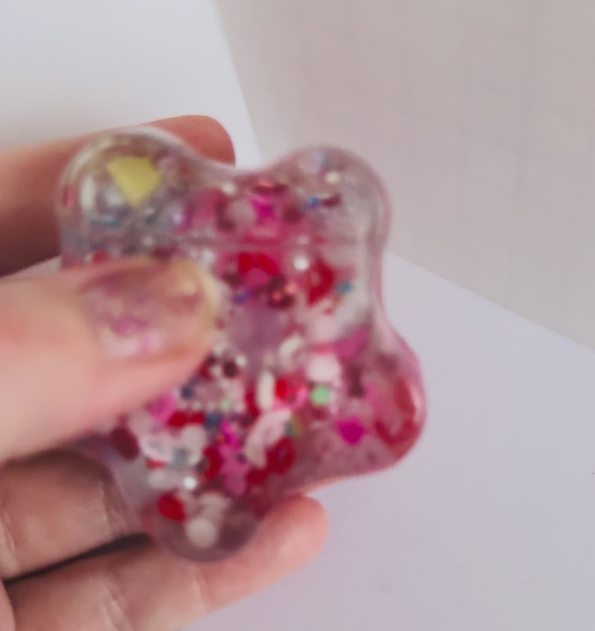 Filled with tiny lipstick stains, hearts and pink glitter, I’m surprised this one didn’t sell much sooner! There are also pearlescent beads in the shape of ribbons and hearts inside too. Maybe it’s a bit too common, I don’t know. But this one is very feminine and very pink! When it catches the sunlight, the different shades of pink you see are mesmerising.