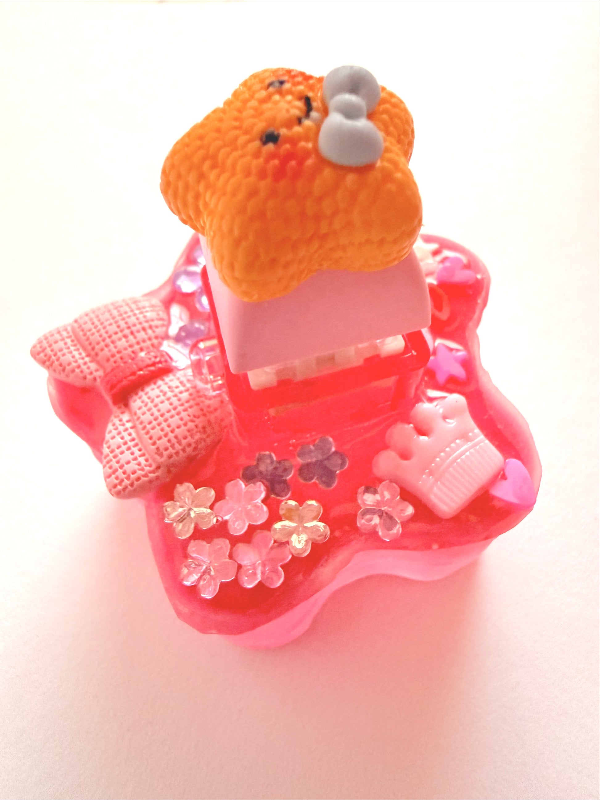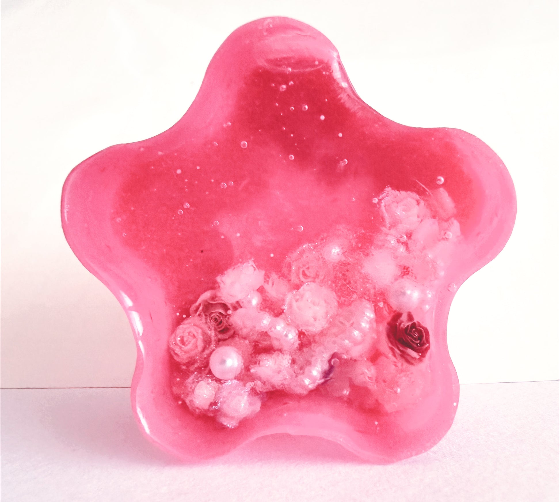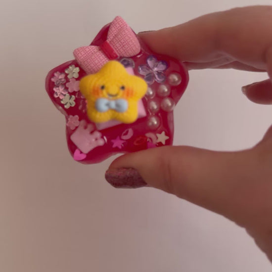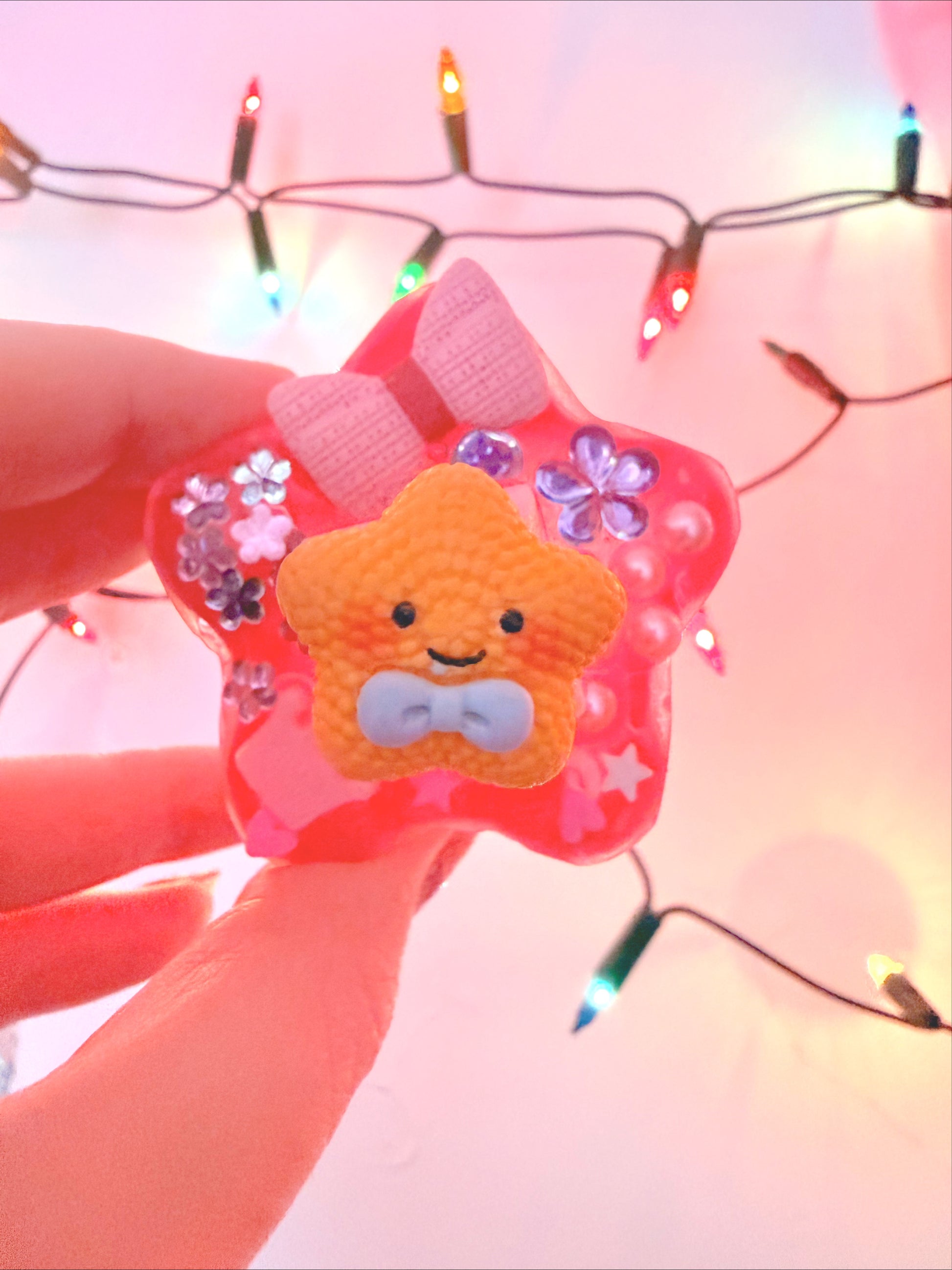 The edges and back of this sensory tool I made a very gorgeous hot pink! Inside the window, there are various flower charms that glow in the dark and move slowly when shaken. Medium flow. Medium intensity. Perfect for admiring when you need a moment.
