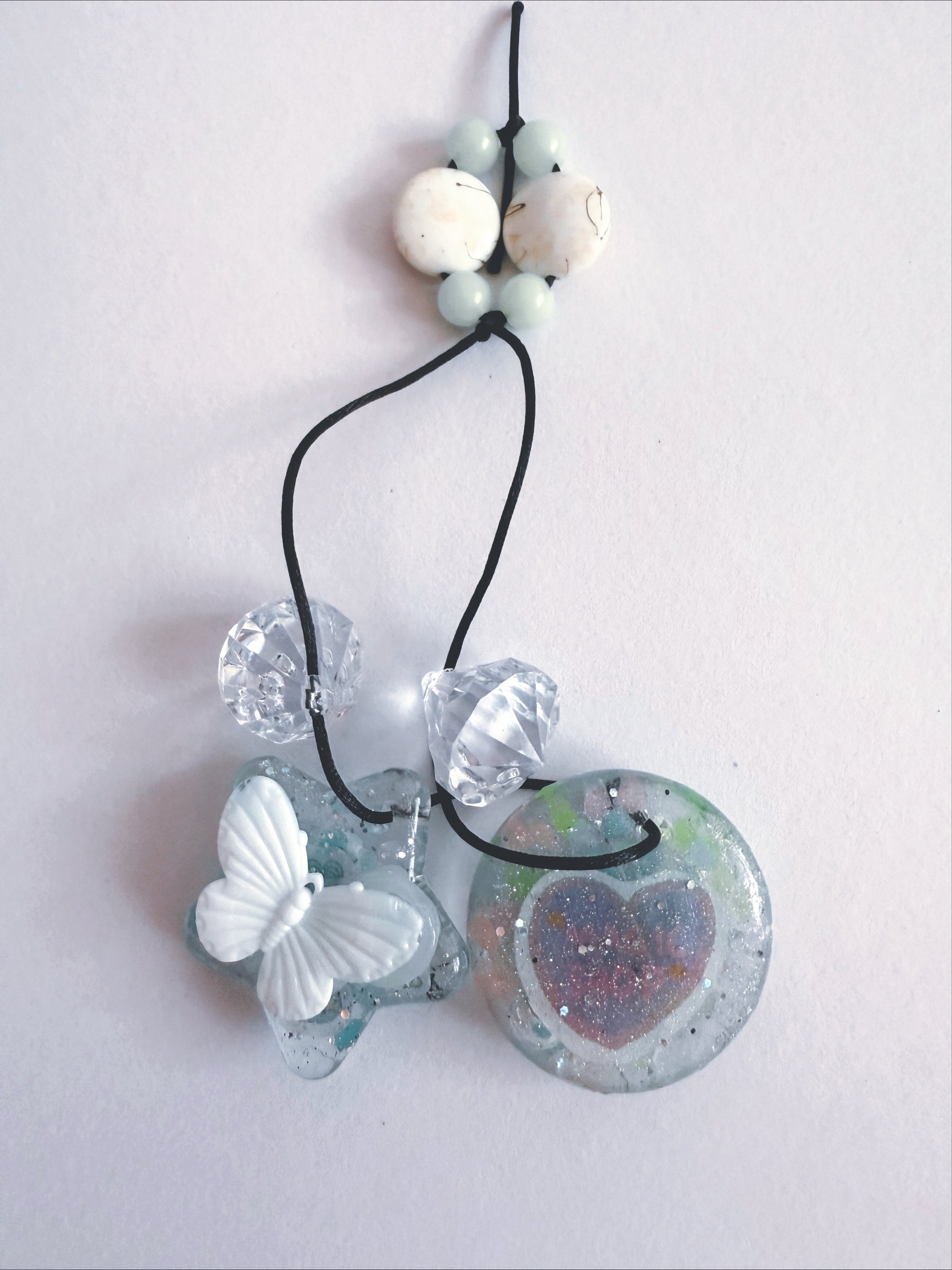 This sensory chain not only glows in the dark, it has two textured worry stones you can rub together for a satisfying, grounding sound. Decorated with love hearts, flowers and butterflies, the chain has a ring at the top for your finger so you don’t have to worry about dropping it while you’re fidgeting! Additional beads like diamonds and roses are also attached for extra sensory heaven! Each chain can be attached to keyrings, bags etc. Each chain comes in its own pouch.