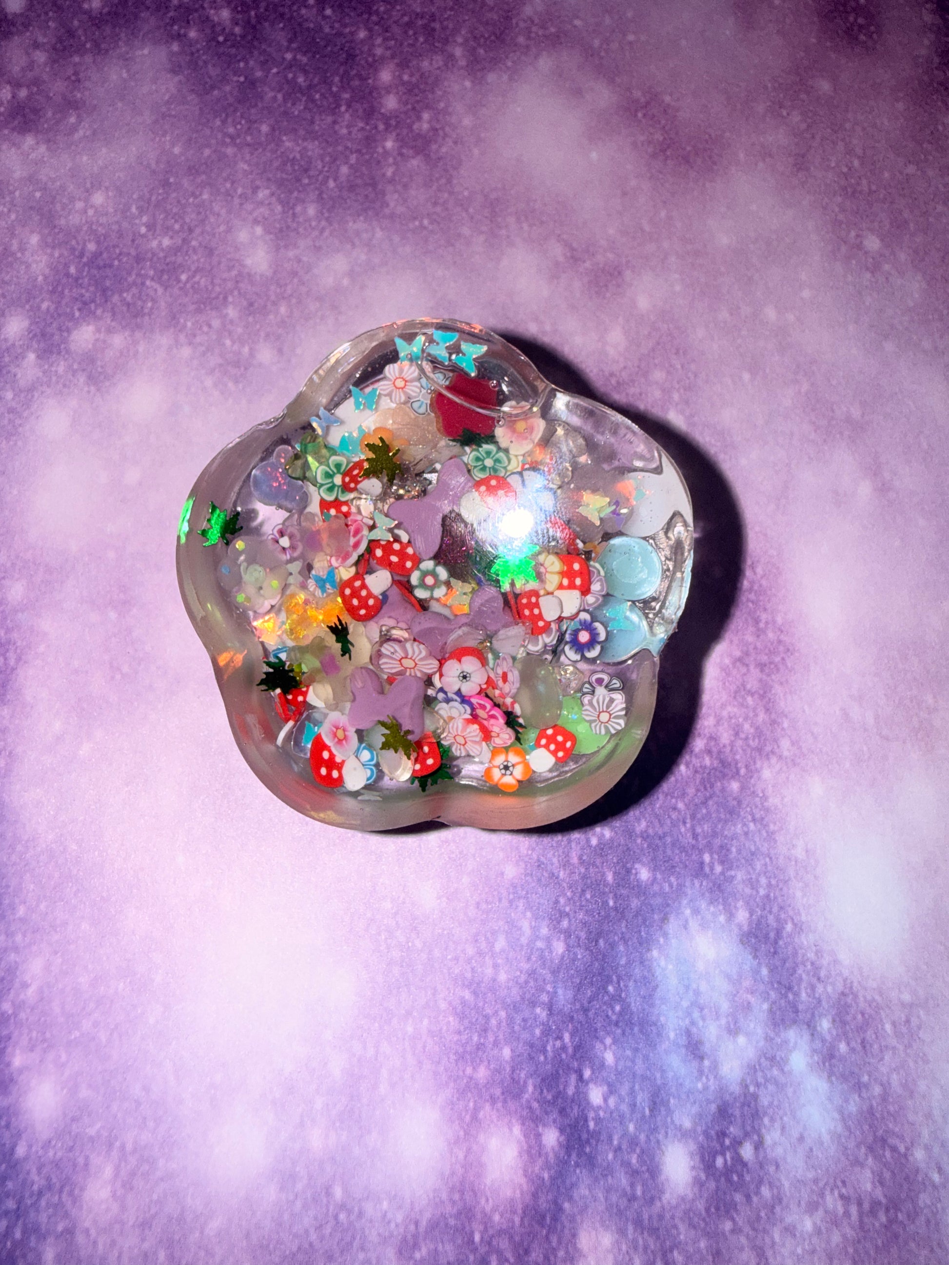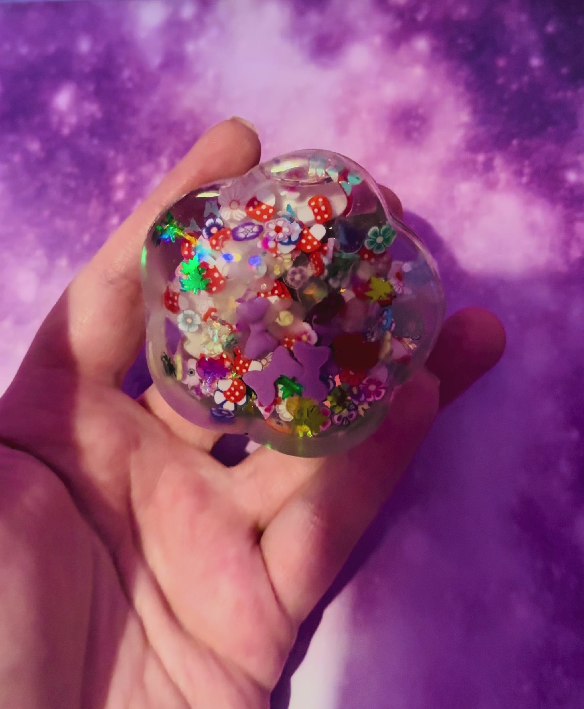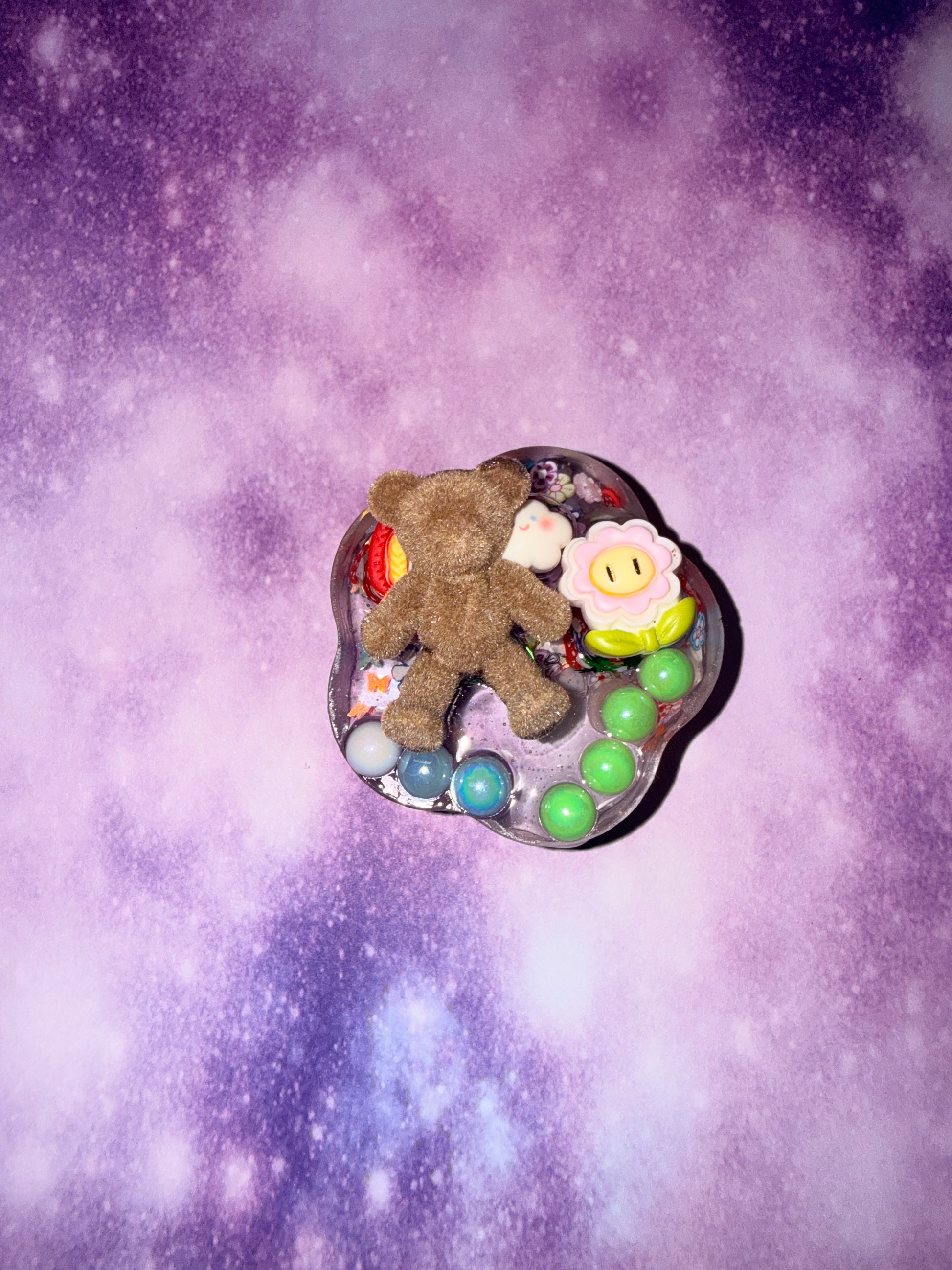 This tool has toadstools, bears, butterflies, ribbons, flowers, leaves, paws, and glow in the dark butterflies inside. Itâs a slow flowing oil, which means it takes longer for the charms inside to reach the bottom when rotated. The back features a fuzzy teddy bear that smells of chocolate, flowers and colourful beads.Â