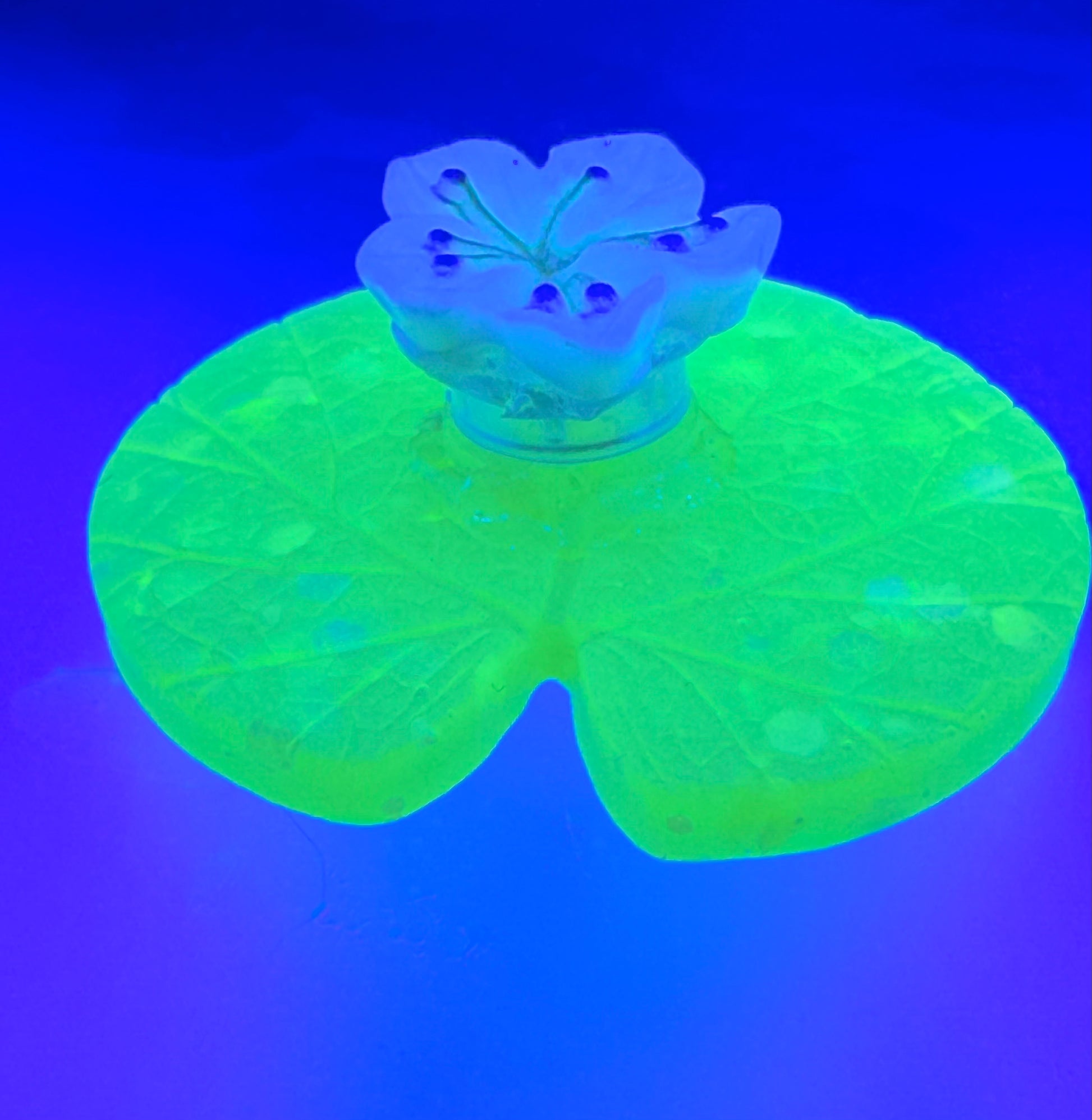 A glow in the dark lily pads hosts a beautiful lily flower that spins!