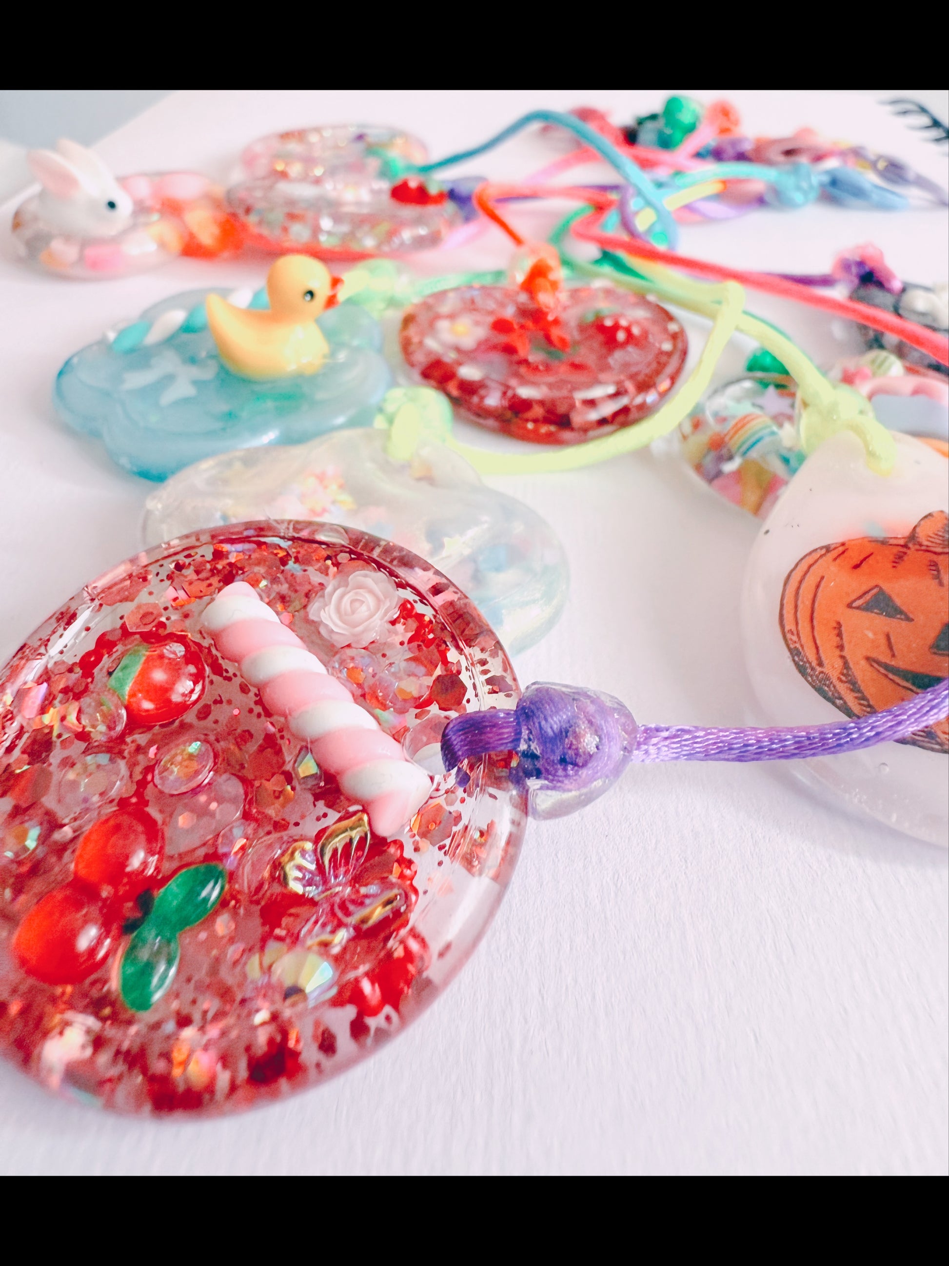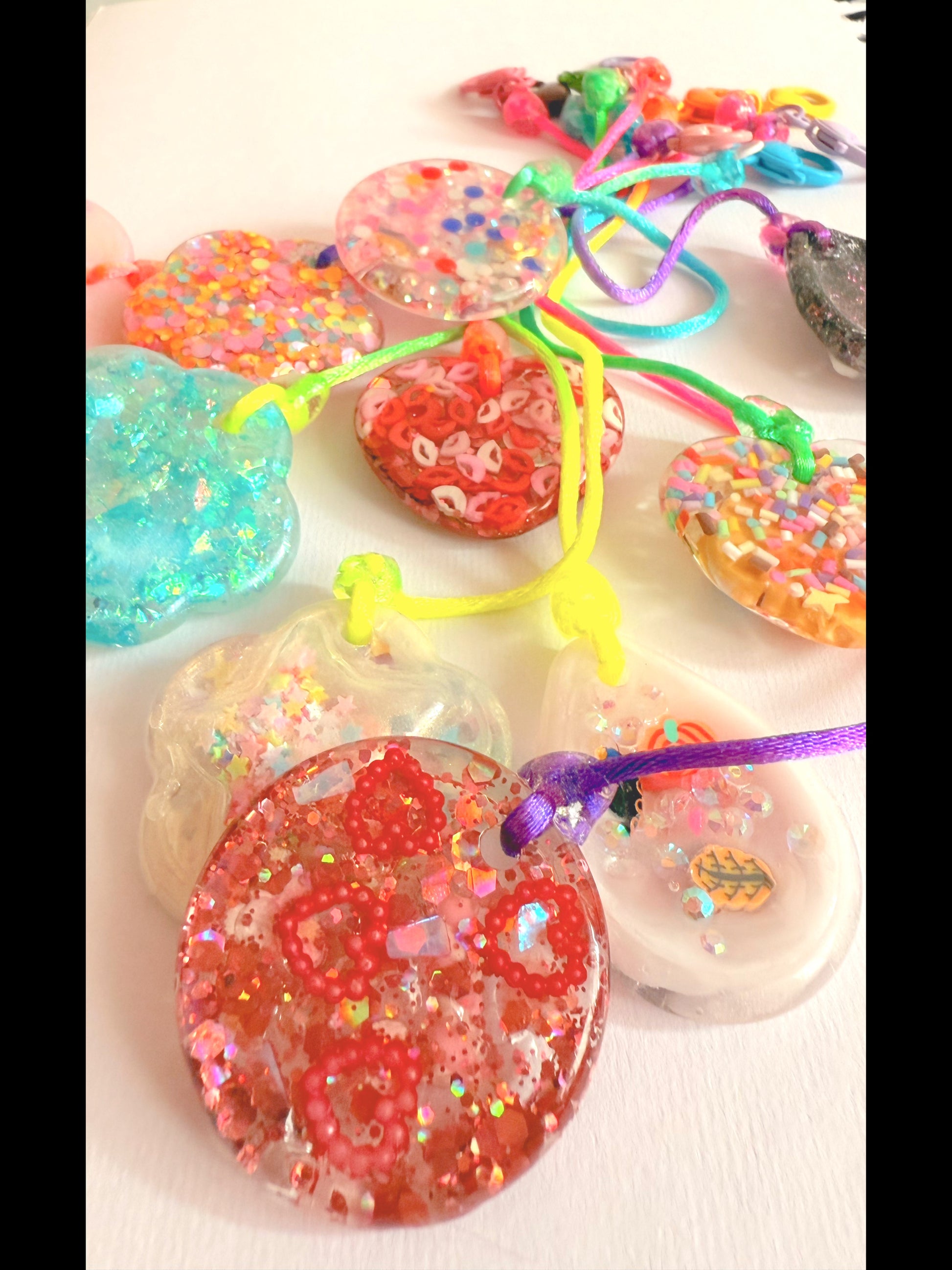 Bag yourself a mystery textured stone on a colourful chain. Handmade and decorated with various pieces. You will recieve one chain with every mystery!