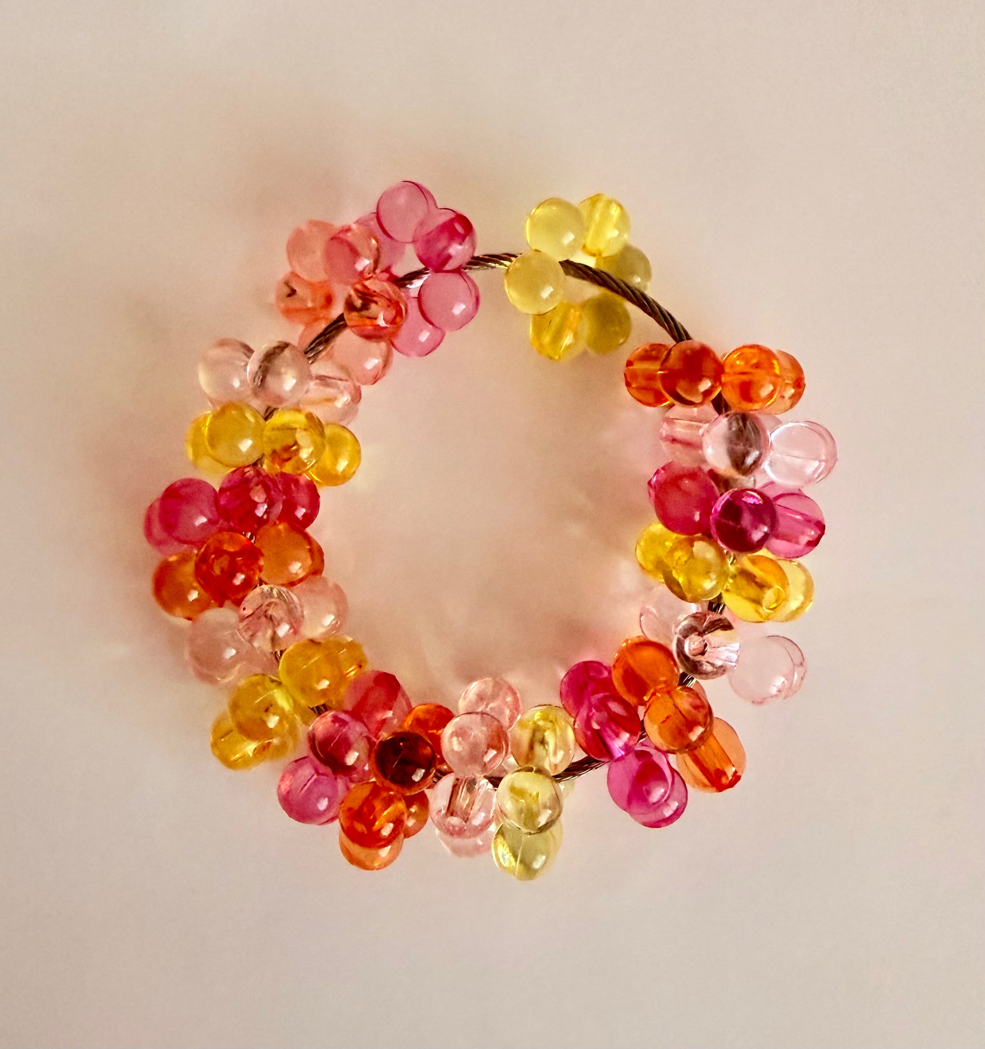 Spring colours, noisy in a good way on a silver loop and made with flower bubble beads